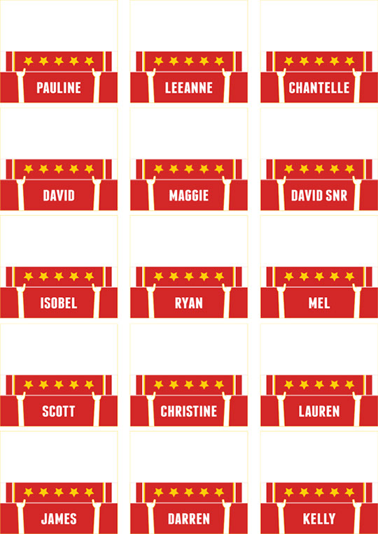 Wedding stationery for a football-mad couple. Items included seating chart, placecards and table numbers.