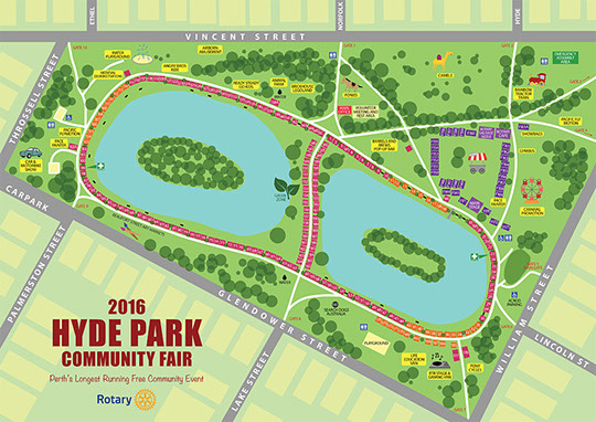 Assorted print media for a large-scale community fair. A map and newspaper advertisement.